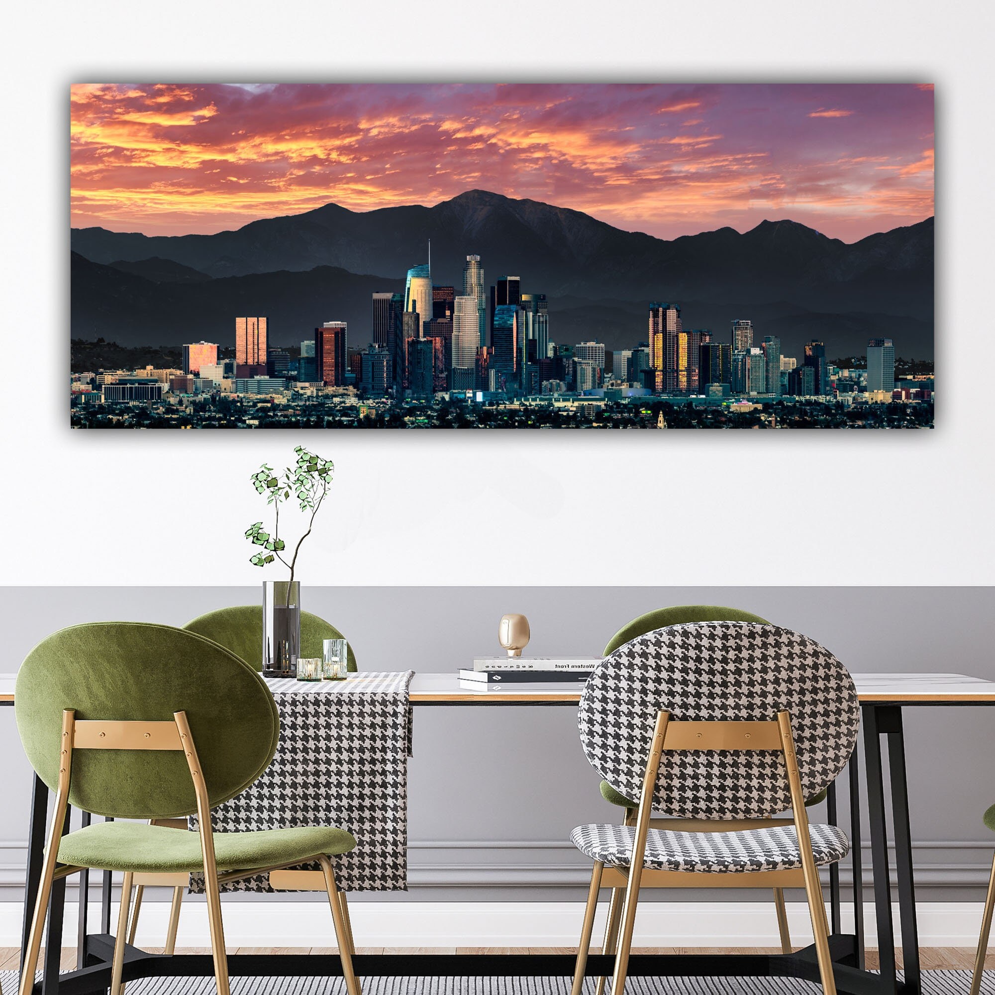 Los Angeles Skyline On Canvas La Skyline Sunset With San Etsy Finland